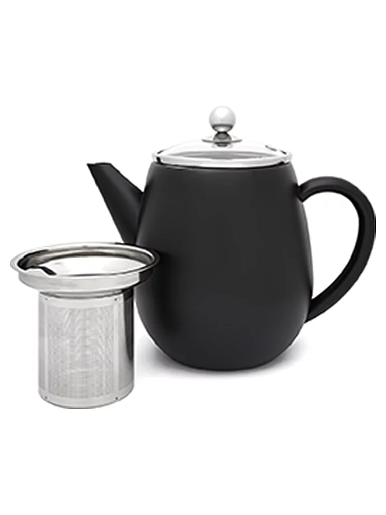 Tetera de doble pared de acero inoxidable de alta calidad Los accesorios se calientan como máximo al tacto Excelente vertido sin goteo 1,1 litros Acero inoxidable mate