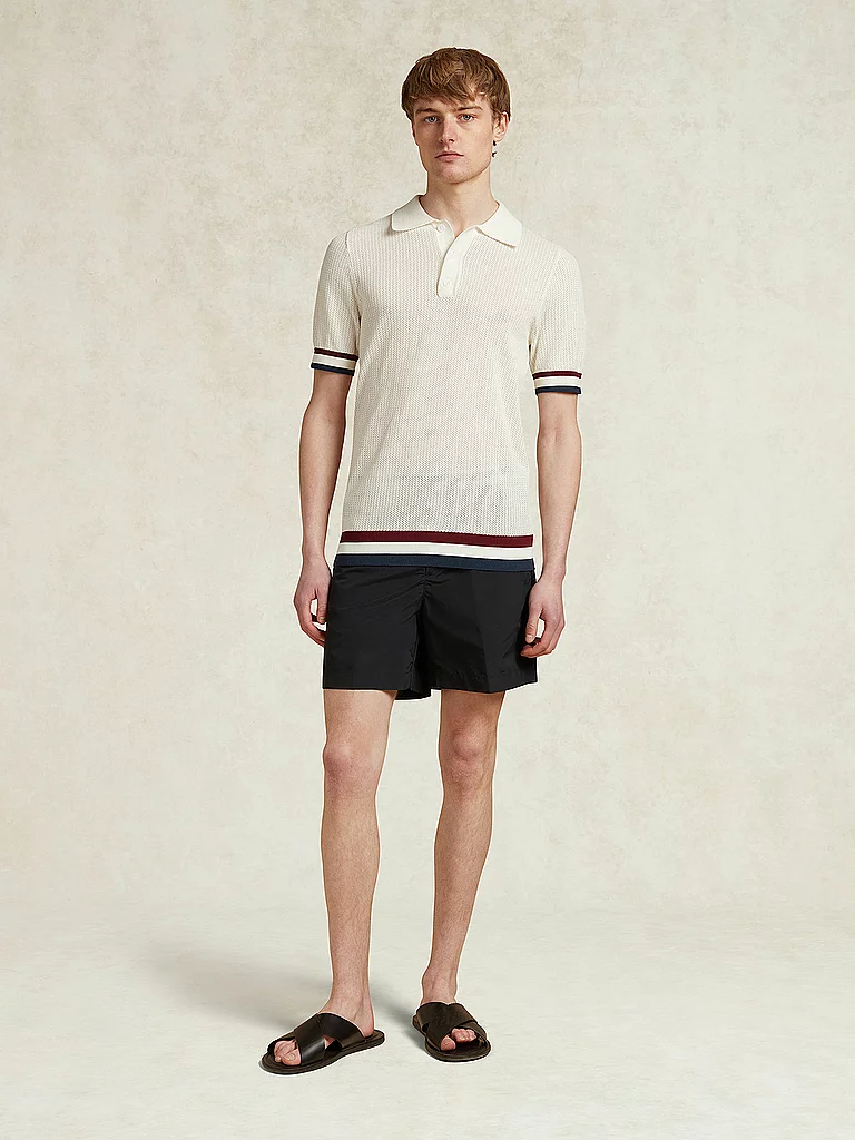 Polo de punto para hombre de puro algodón Cuello polo Tapeta de botones corta Manga corta Puños a rayas CHÉ en mangas y bajo Corte recto Nombre del color: White&nbs...