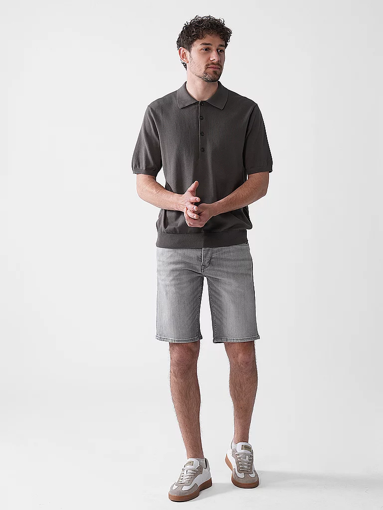 Poloshirt de hombre de punto fino Algodón orgánico puro Cuello polo con tapeta de botones corta Manga corta Corte recto Unicolor Nombre del color: Pepper Grey Material: 100% algodón