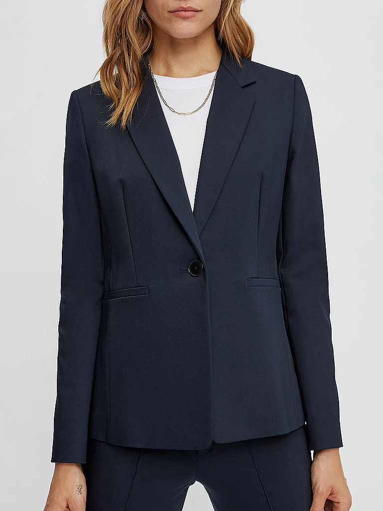 Blazer versátil para mujer Solapa caída Corte largo entallado Con un botón Bolsillos laterales ribeteados Color: navy Material: 70% algodón, 26% poliamida, 4% elastano