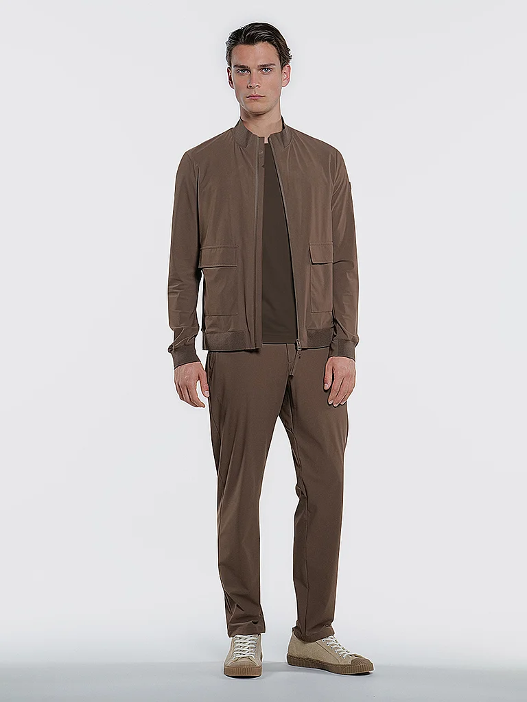 Chaqueta ligera para hombre Cuello alzado Manga larga Dos bolsillos con cremallera Dos bolsillos de parche con solapa Logotipo tonal en la manga Nombre del color: Marrón Óptima para entretiempo Materi...