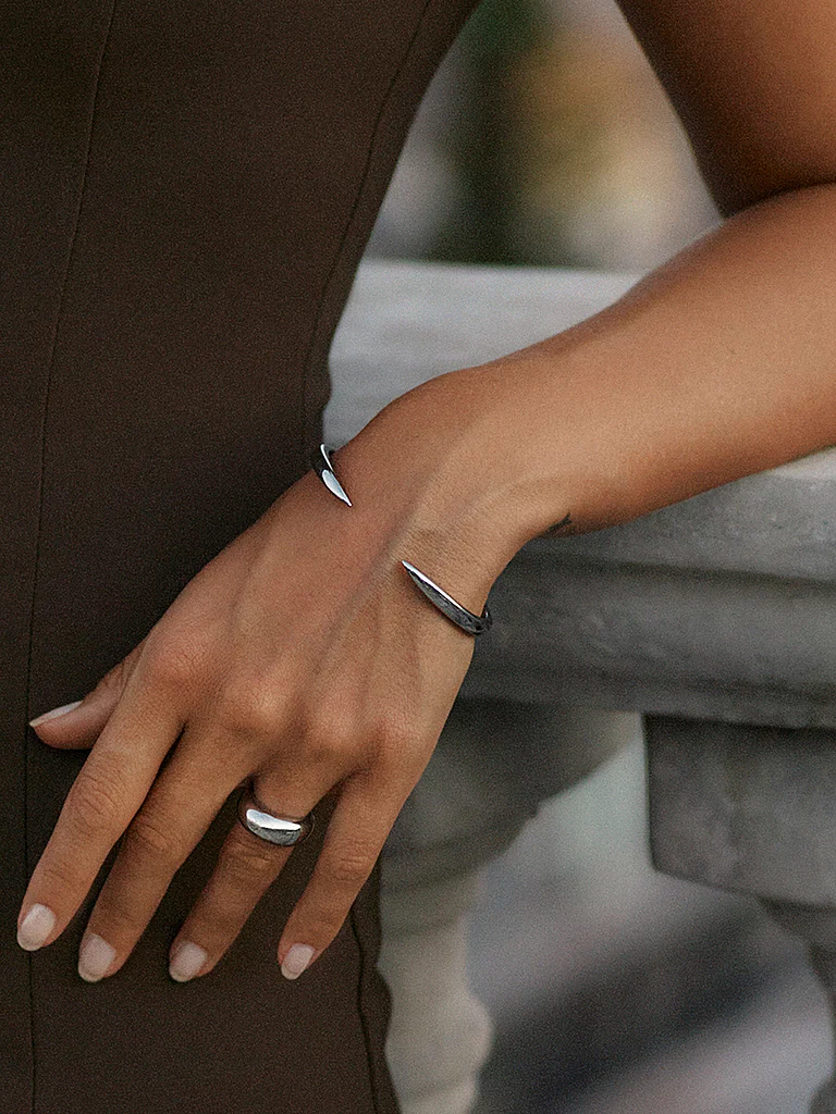 Crest Bangle es un brazalete delicado, ligeramente redondeado y con un extremo puntiagudo. Una joya hermosa y elegante que se convertirá rápidamente en una de tus favoritas, ya sea llevándola sola o c...
