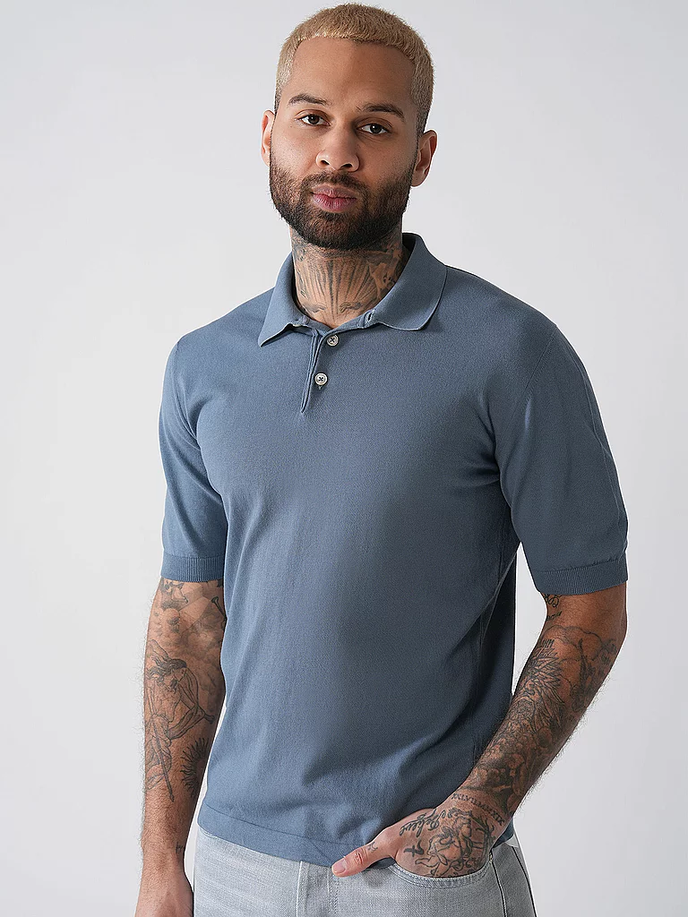 Polo de hombre de crepé de algodón Cuello polo Tapeta de botones corta Media manga Color liso Corte recto Nombre del color: Denim Material: 100% algodón
