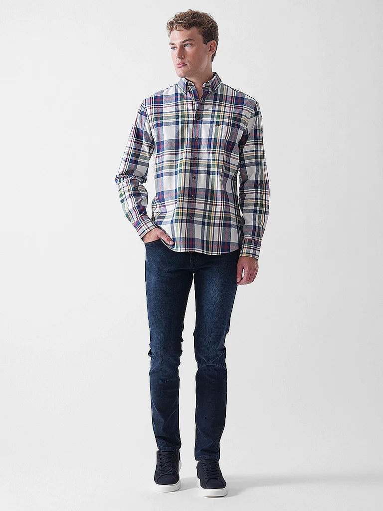 Camisa de hombre de tejido de algodón Cuello abotonado Manga larga Bolsillo en el pecho con logo Corte recto Estampado de cuadros Nombre del color: Depp Merlot Material: 100 % algodón