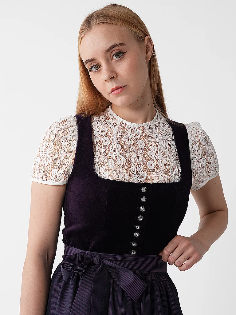 Blusa Dirndl de nailon para mujer Aplicación de encaje en la parte delantera y trasera Cremallera oculta en la parte central trasera Gran comodidad gracias al tejido de punto en la parte delantera y t...