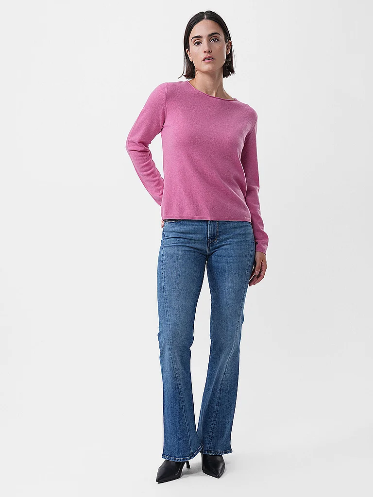 Jersey de cachemira suave para mujer Cuello redondo Manga larga Puños de canalé estrechos en mangas y bajo Corte recto Color liso Nombre del color: Frambuesa Material: 100% cachemira
