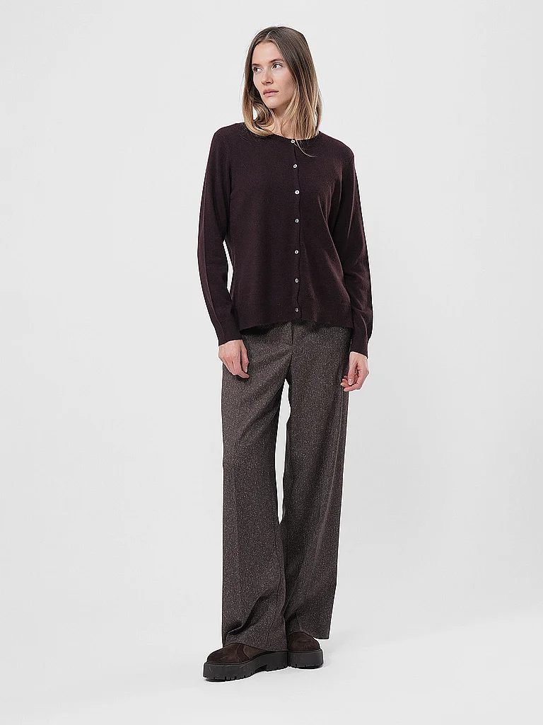 Cárdigan de punto para mujer Cuello redondo acanalado Se cierra con botonadura Manga larga Puños acanalados en mangas y bajo Aberturas laterales cortas Gran comodidad Unicolor Nombre del color: Merlot...