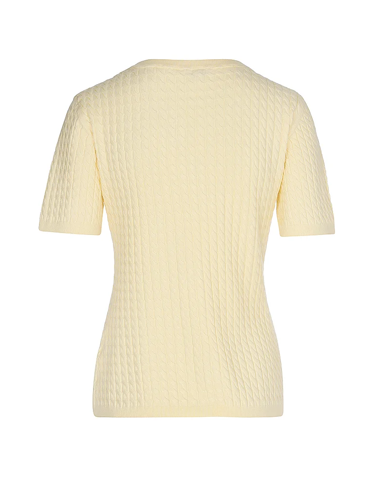 Jersey de punto grueso de manga corta para mujer Cuello redondo con corte raglán Manga corta Corte recto Acabados acanalados Color liso Nombre del color: Vainilla Material: 69% algodón, 31% nailon