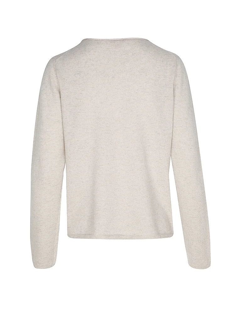 Jersey de cachemira suave para mujer Cuello redondo Manga larga Puños de canalé estrechos en mangas y bajo Corte recto Color liso Nombre del color: Sand Melange Material: 100% cachemira
