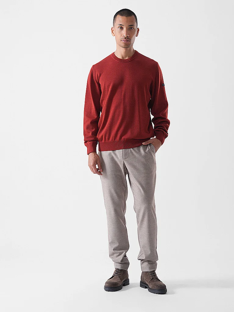 Jersey de punto para hombre de pura lana merina Cuello redondo Manga larga Puños en mangas y bajo Color liso Corte holgado Nombre del color: Negroni Material: 100% lana merina