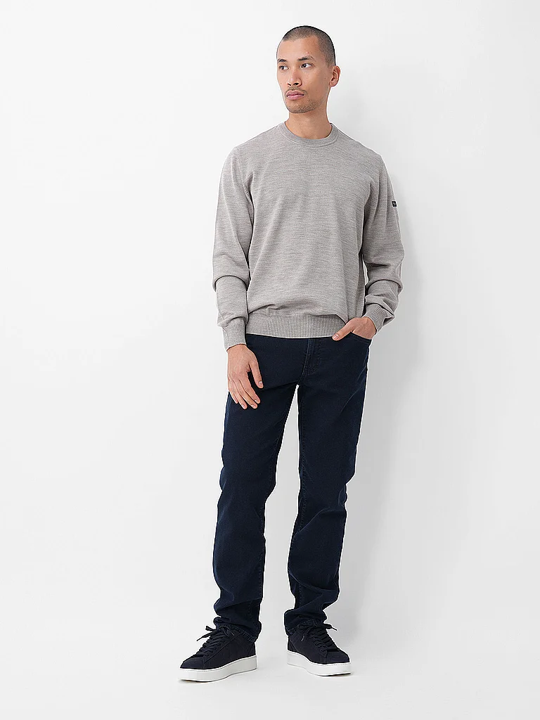 Jersey de punto para hombre de pura lana merina Cuello redondo Manga larga Puños en mangas y bajo Color liso Corte holgado Nombre del color: Icedn Latte Material: 100% lana merina