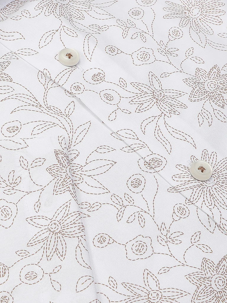 Camisa de hombre de puro algodón Cuello Kent Se cierra con tapeta de botones Manga corta Estampado floral integral Corte entallado No necesita plancha Nombre del color: Blanco / Beige Material: 100% a...