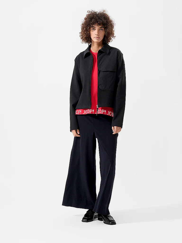 Blouson de mujer en mezcla de nailon y softshell Cuello Manga larga Se cierra con cremallera Bolsillo de parche llamativo en el pecho Corte recto Unicolor Dobladillo con cordón Nombre del color: Black...