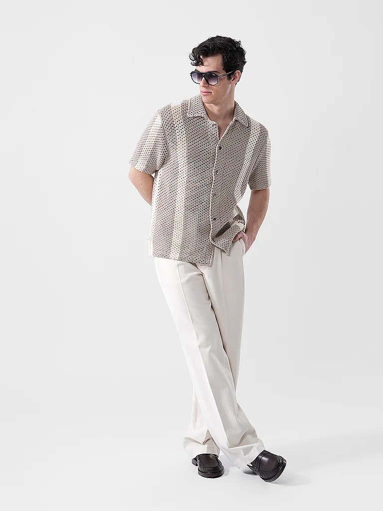 Polo de hombre de puro algodón Cuello polo Manga corta Estampado de rayas Corte recto Denominación de color: Beige Material: 100% algodón
