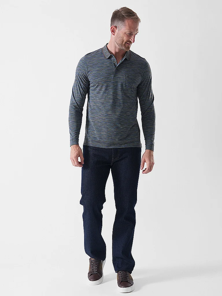 Polo de hombre Cuello polo con tapeta de botones corta Manga larga Bolsillo en el pecho Aspecto jaspeado Corte recto Nombre del color: Dark Taupe Material: 70% algodón, 30% poliéster