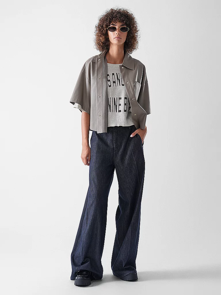 Chaqueta de mujer de cuero finamente granulado Cuello Manga corta Se cierra con tapeta de botones a presión Un bolsillo de parche en el pecho Color liso Corte holgado Nombre del color: Tundra Material...