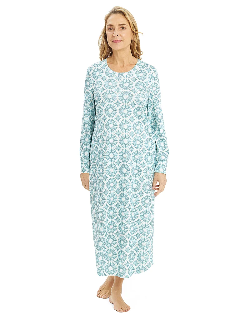 Camisón de mujer de puro algodón Cuello redondo Manga larga Puños en el extremo de la manga Estampado integral Corte recto Corte cómodo Largo: 125cm Nombre del colo...
