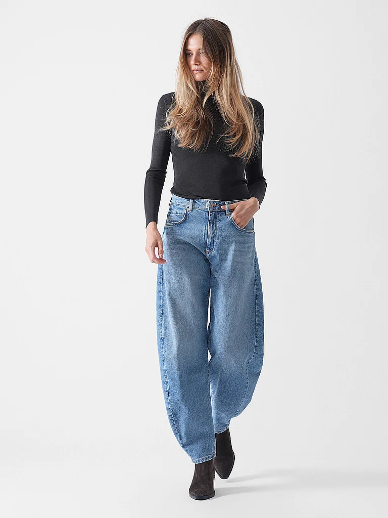 Este top de punto azul oscuro de viscosa, que destaca por su elegancia sencilla, convence tanto como una versátil prenda para combinar como para llevar solo. Combínalo con una minifalda para tu próxim...