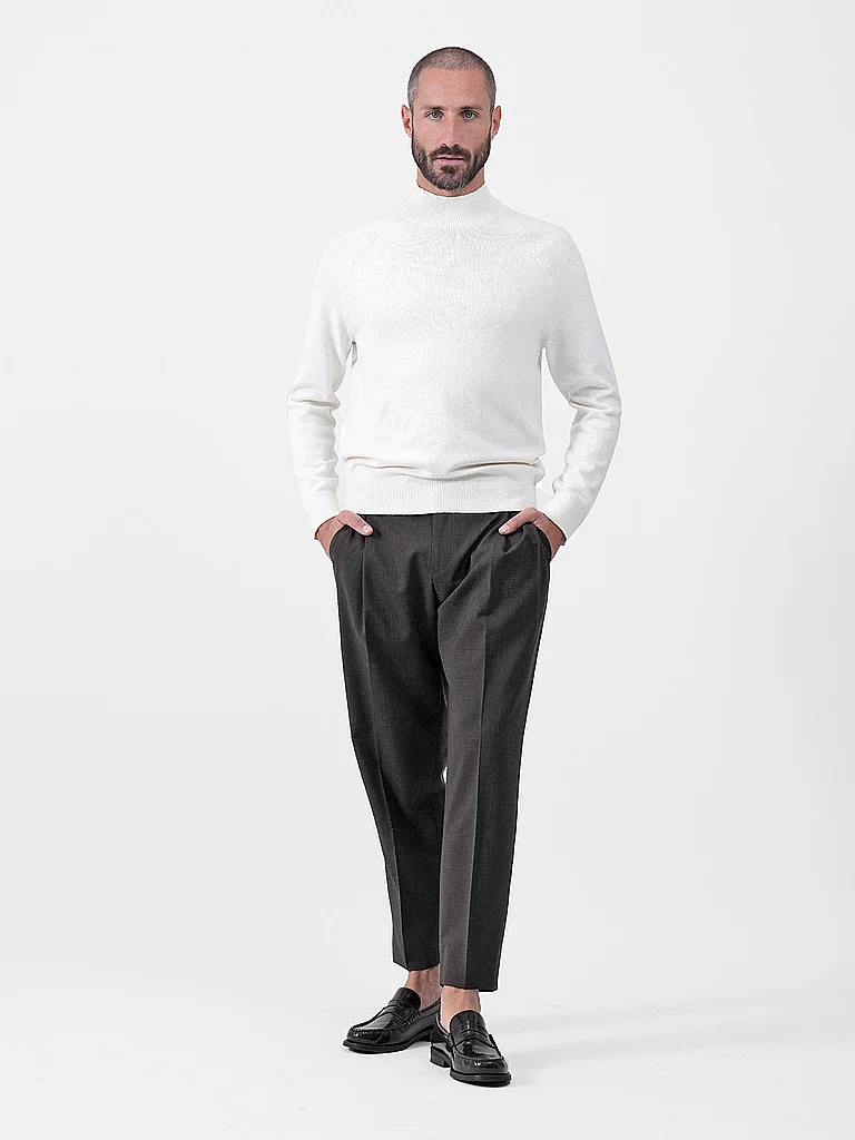 Todoterreno con estilo: jersey de hombre de suave lana virgen con finas costuras decorativas Cuello alto Manga larga con puños de canalé Corte recto Color liso Nombre del color: OFF White Material: 10...