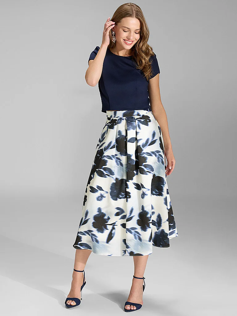 Falda midi de twill para mujer Estampado integral Largo midi Con pliegues Nombre del color: Ivory / Navy Material: 100 % poliéster