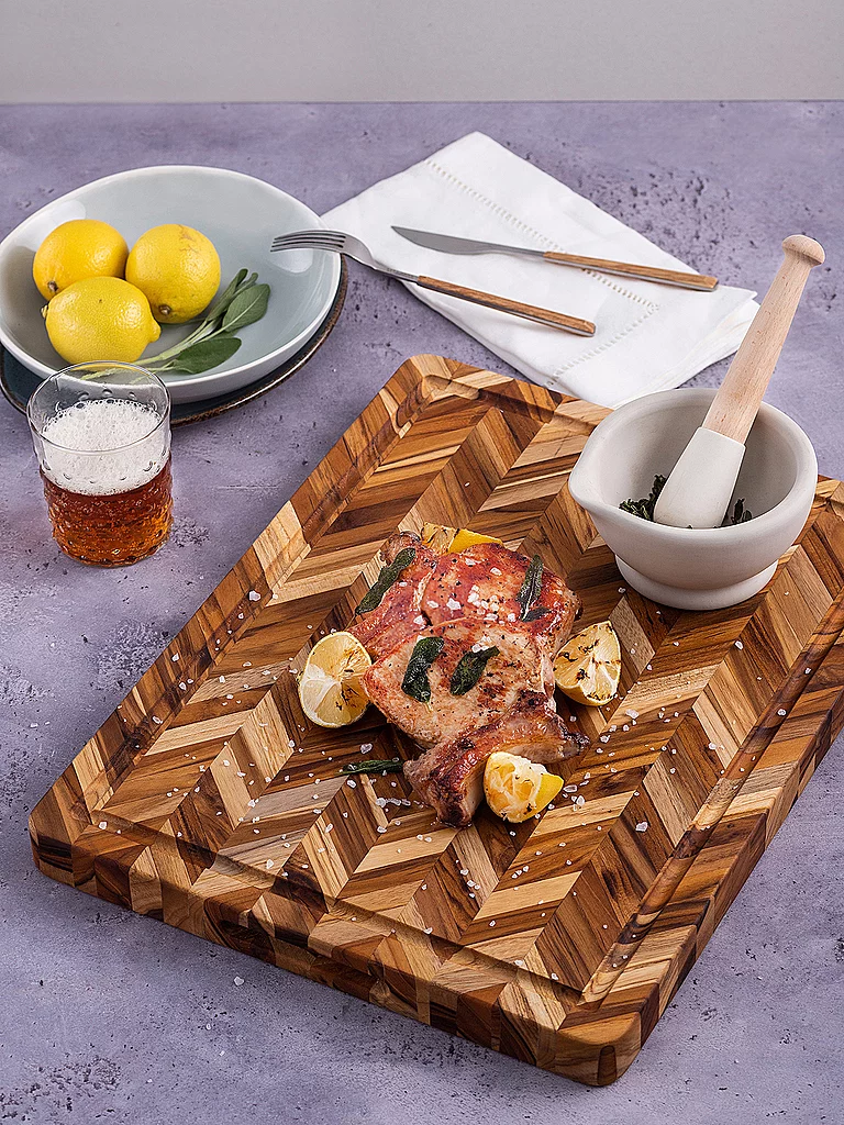 TEAKHAUS Tabla de cortar Herringbone extra gruesa de 41x30,5cm de madera de teca marrón