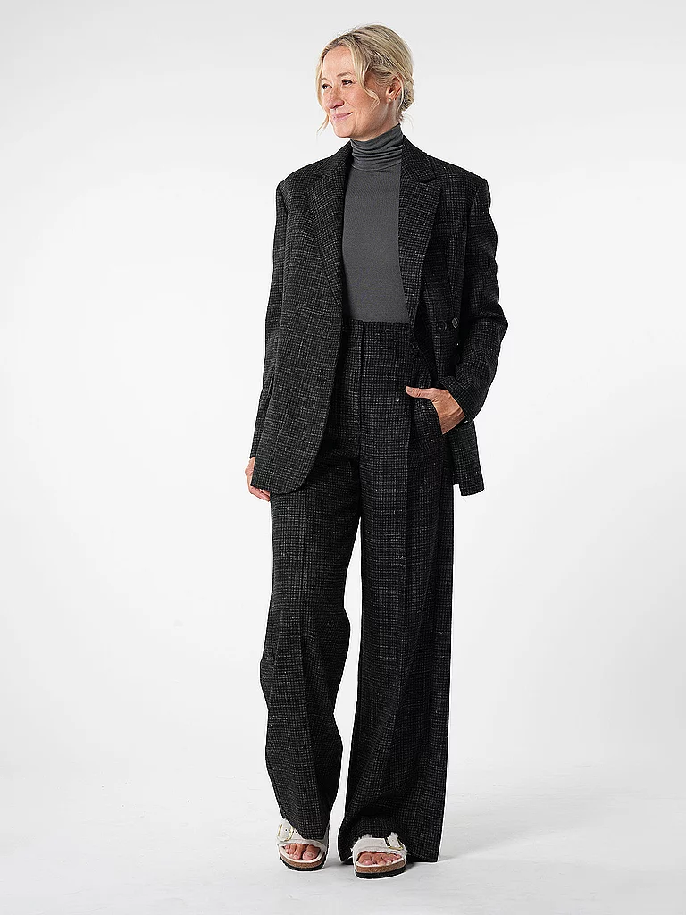 Blazer de mujer de mezcla de lana de alta calidad Cuello de solapa Manga larga Un bolsillo en el pecho Tapeta de botones desplazada Dos bolsillos con solapa Patrón de cua...