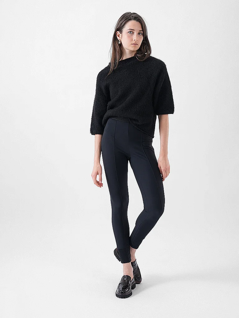 Jersey de punto suave para mujer Cuello alto Mangas 3/4 Color liso Corte holgado Nombre del color: Negro Material: 57% poliamida 42% alpaca 1% elastano
