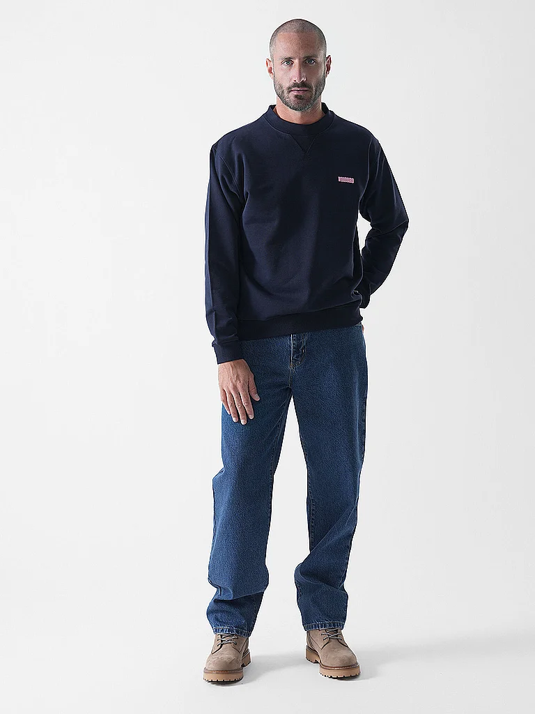 Suéter de hombre de algodón orgánico Cuello redondo Manga larga Corte recto Logotipo en el pecho Estampado grande en la parte trasera Nombre del color: Navy Material: 100% algodón orgánico
