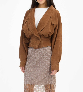 Rotate para mujer. 115714249 Chaqueta de piel Bomber marrón