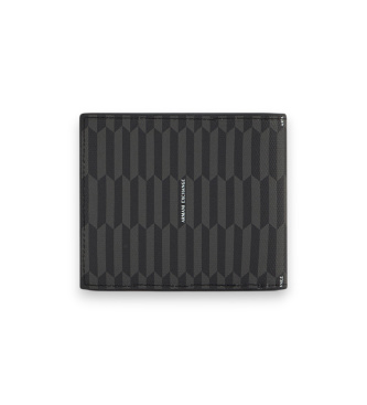 Práctica cartera plegable en color negro pensada para hombre, con un acabado monogramado y un detalle de doble raya que define su estética. Cuenta con ocho ranuras para tarjetas y un compartimento par...