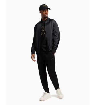 Camiseta de cuello redondo en color negro, confeccionada en algodón mercerizado con tejido de punto jersey. De corte regular, presenta un estampado en foil que le da un toque moderno y sofisticado. Id...