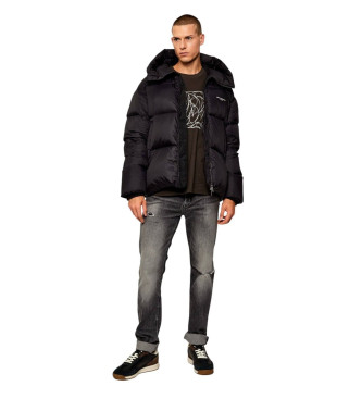 Chaqueta de plumón negra ARMANI EXCHANGE para hombre. Esta chaqueta de plumón presenta un diseño con capucha que equilibra comodidad e impacto visual. Forrada con aislamiento térmico, mantiene una sen...