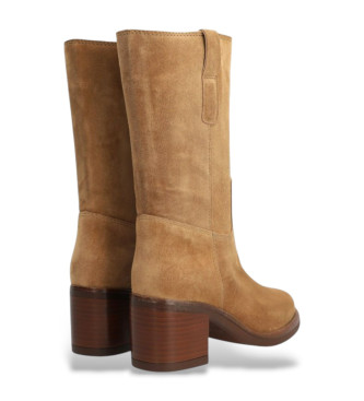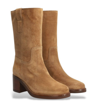 Bota de media caña de Alpe en piel serraje color taupe, con diseño minimalista y elegante. Con tiradores laterales para facilitar el calce y un cómodo tacón ancho de unos 6 cm que estiliza sin renunci...