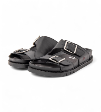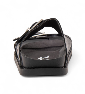 Sandalias de mujer con construcción cosida 360º y una estética contemporánea y natural. Exterior en piel bovina de color negro (material principal) y forro de microfibra que garantiza tacto y transpir...