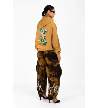 Sudadera con capucha extragrande 100% algodón. Logotipo de BARROW bordado con una carita sonriente en el pecho y un gran estampado patchwork de un osito de peluche en la espalda. Bolsillo tipo canguro...