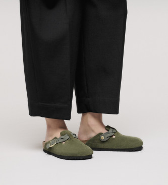 Birkenstock para mujer. 1030599 Zuecos de Piel Boston Braided verde