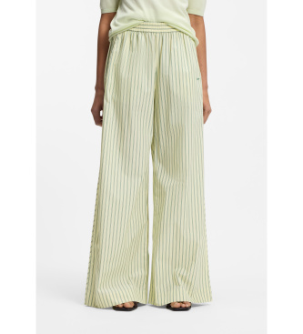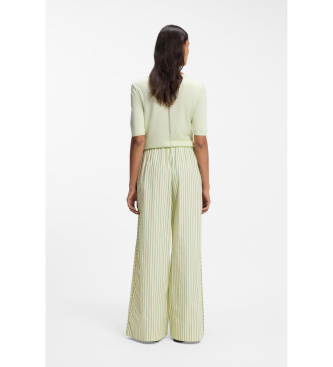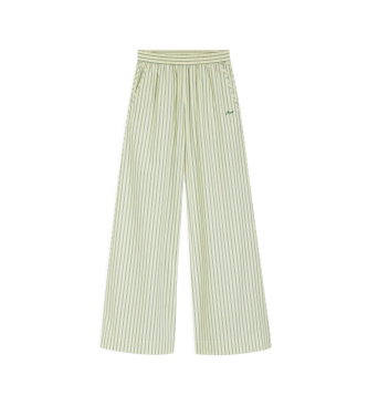 La frescura del verano hecha pantalón. Este wide leg de rayas en tono verde lima y blanco combina la ligereza del tejido con una silueta fluida y generosa que invita al movimiento. La cintura elástica...