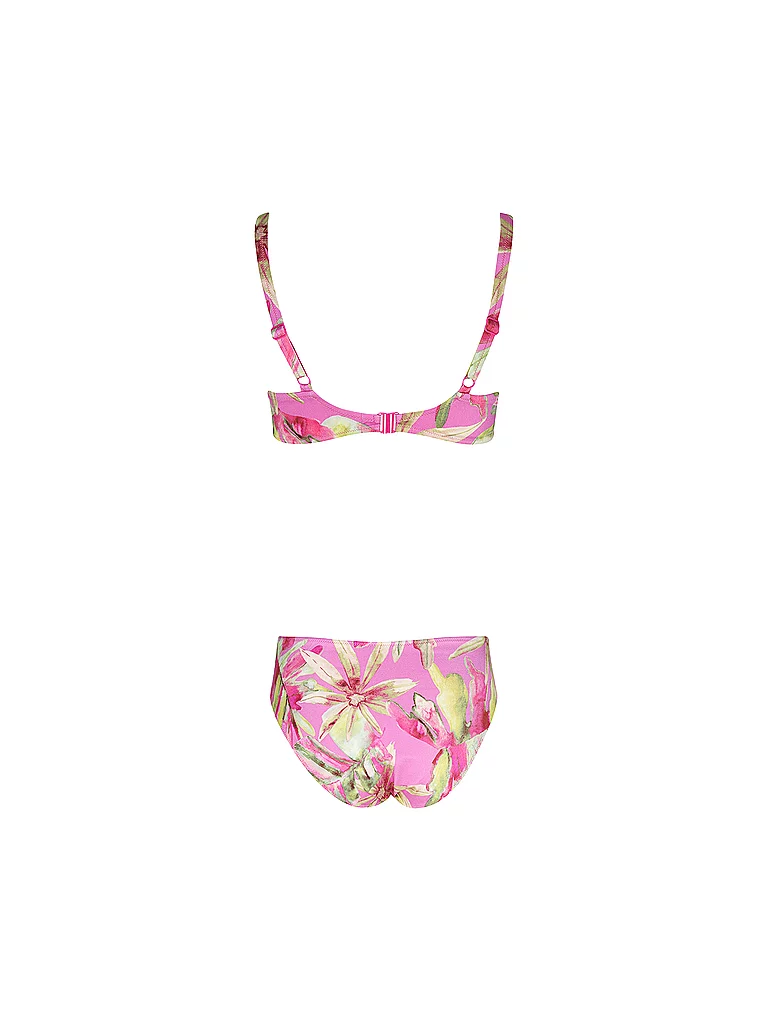 Sujetador con aros Tirantes ajustables Cierre de gancho Estampado floral integral Braga ligeramente fruncida en los laterales Material: 80% poliamida, 20% elastano Nombre del color: Rosa