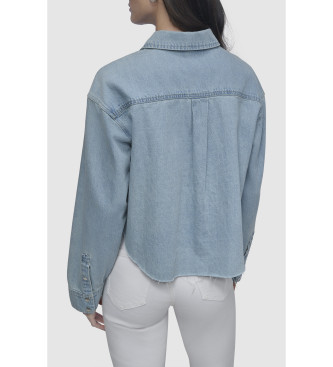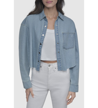 DKNY para mujer. DJ5W2107 Camisa Cropp azul (L), Casual, Algodón, Manga larga