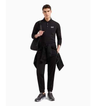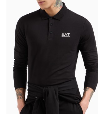 EA7 para hombre. 8NPF15_PJVQZ Polo de manga larga Core Identity en algodón elástico negro (S), Casual