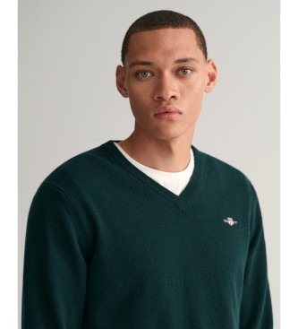 Gant para hombre. 87212 Jersey cuello de pico en lana fina verde