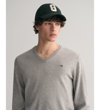 Gant para hombre. 87212 Jersey de cuello de pico gris (M), Casual, Lana