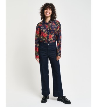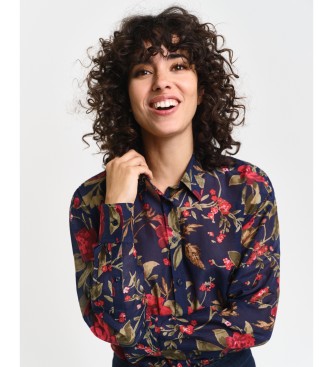 Gant para mujer. 4300419 Camisa Relaxed Fit de seda y algodón con estampado de rosas marino