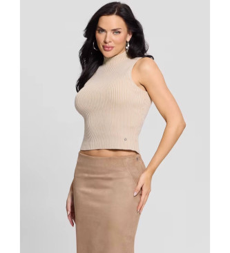 Guess para mujer. W5RR29Z3C71 Camiseta Rosalia Mock Neck beige (L), Casual, Algodón, Sin mangas / Tirantes