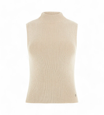 Camiseta Rosalia Mock Neck en color beige. Sin mangas Cuello Mao . Ref.: W5RR29Z3C71, Color: Beige, Estilo: Casual, Material: Algodón, Manga: Sin mangas / Tirantes