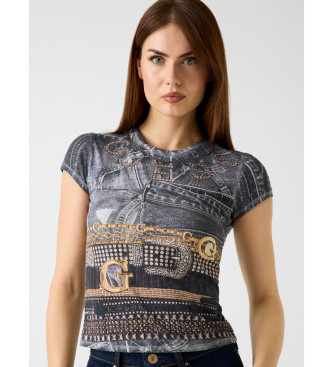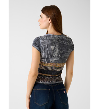 Guess para mujer. W6RI05KCCG0 Camiseta estampada negro (XS), Casual, Poliéster, Manga corta