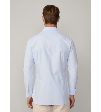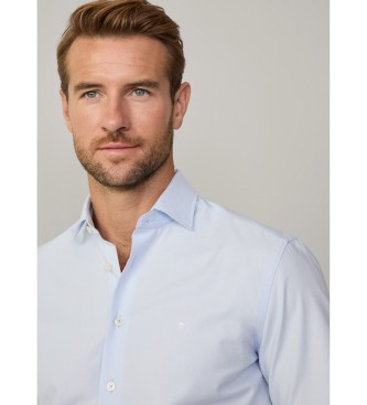 Hackett London para hombre. HM3010254 Camisa fit slim texture azul (L), Casual, Algodón, Manga larga