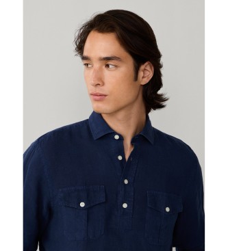 Hackett London para hombre. HM3010639 Camisa lino media tapeta fit clásico marino (L), Casual, Manga larga