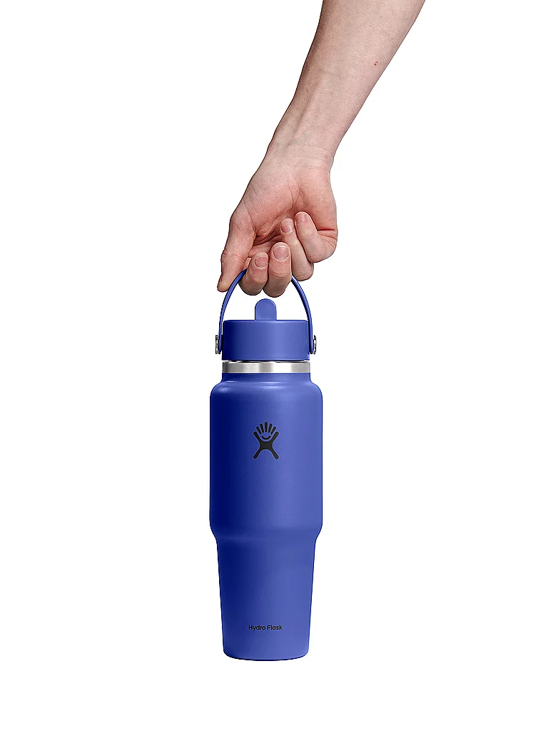 HYDRO FLASK Botella de agua de viaje de boca ancha de 32 oz con tapa de pajita flexible azul