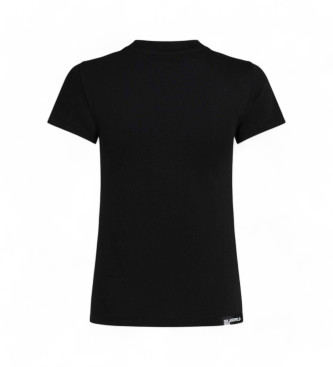 Karl Lagerfeld para mujer. A1W17004 Camiseta básica negro (XS), Casual, Manga corta, Algodón Orgánico